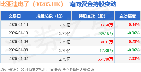证券之星消息,4月13日南向资金增持93.5万股比亚迪电子(00285.HK)。近5个交易日中,获南向资金增持的有3天,累计净增持441.46万股。近20个交易...