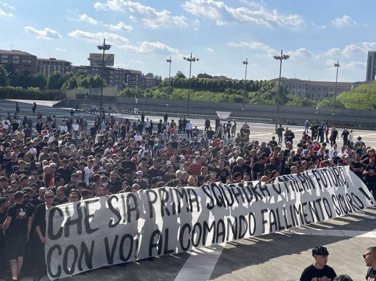 这次抗议针对米兰所有的高层,抗议活动于北京时间23点准时在AC米兰总部外展开,大约3000名米兰球迷到场,包括南看台死忠球迷组织和大量普通米兰球迷。