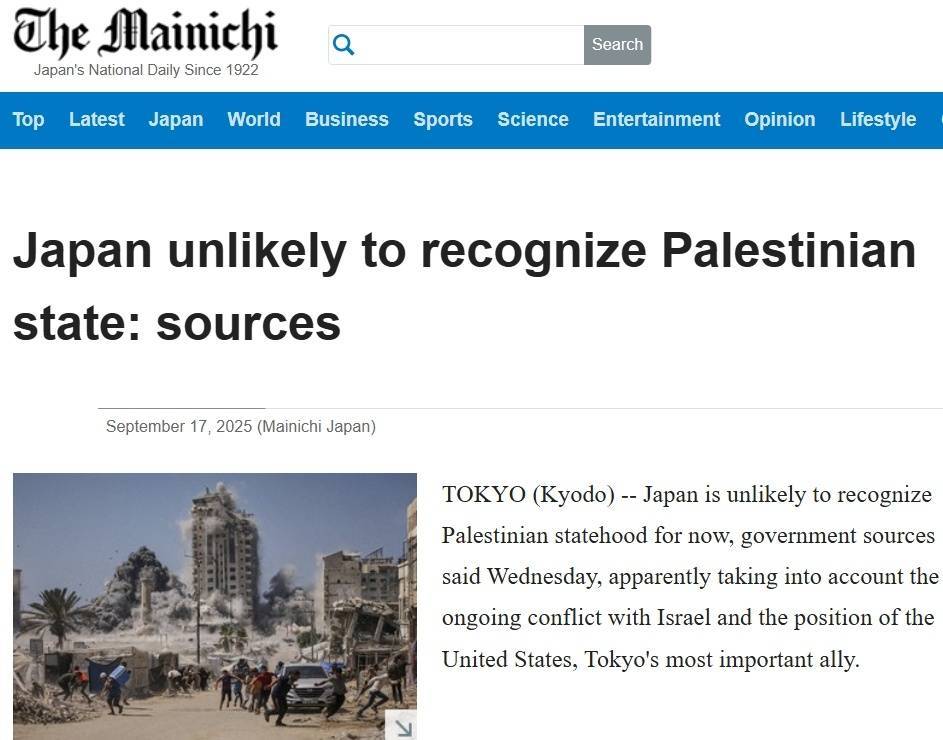 多家日本媒体9月17日援引政府消息人士的话报道称,日本目前不太可能承认巴勒斯坦国,日本政府担心,“承认可能会让以色列的立场更加强硬并加剧巴勒斯坦人道主义危机”。但媒体分析,背后更重要的原因,显然是日本考虑到其最重要盟友——美国的立场,担心对日美关系产生不利影响。