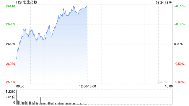 9月24日消息,三大指数低开高走。截至午间收盘,恒生指数涨0.91%,报26397.98点,恒生指数涨2.19%,国企指数涨1.13%。盘面上,科网股普涨,阿里巴巴涨超6%,快手涨超5%,京东涨超2%,美团、哔哩哔哩、腾讯、联想涨超1%;半导体板块强势,华虹半导体涨超7%;电力设备股涨幅居前,涨超3%;创新药概念继续回调,博安生物跌超3%。