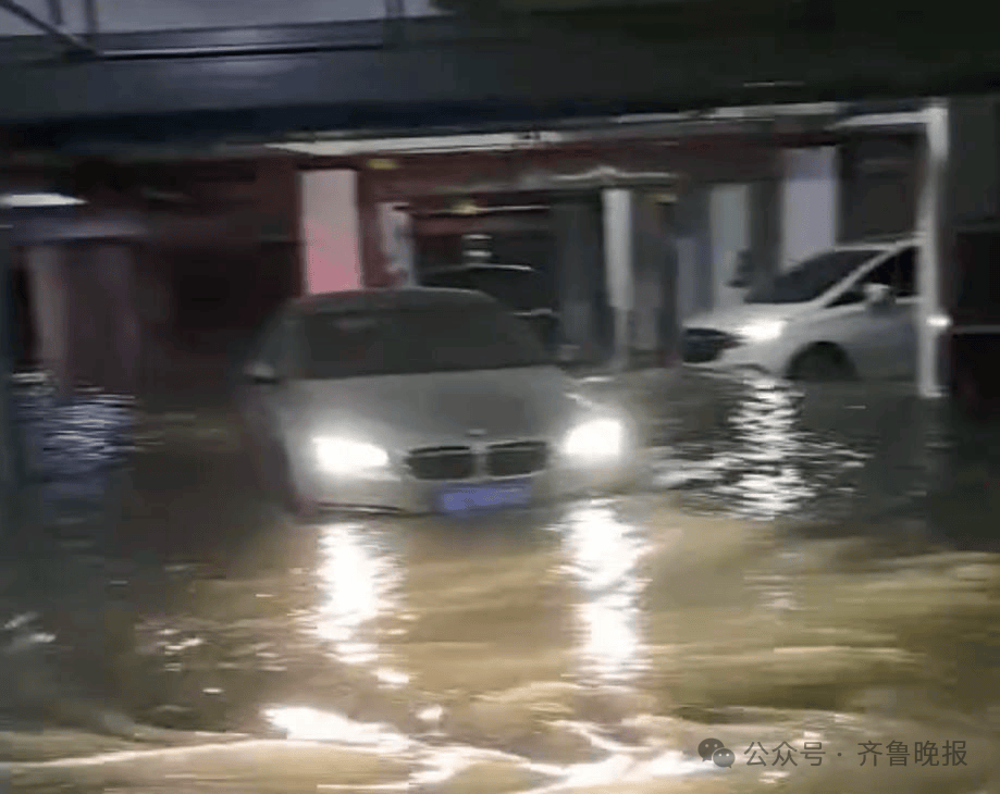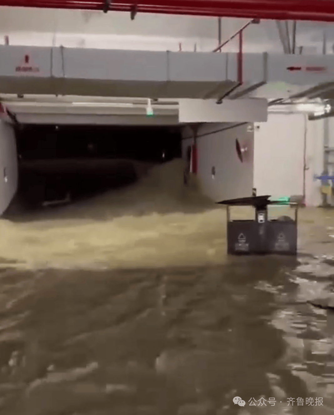 视频显示,的确有汹涌水流从通道灌入地下车库,多辆汽车被水浸泡。