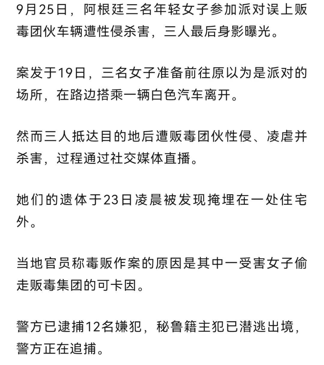 误上贩毒团伙车辆,阿根廷三女子遭性侵虐杀并直播过程
