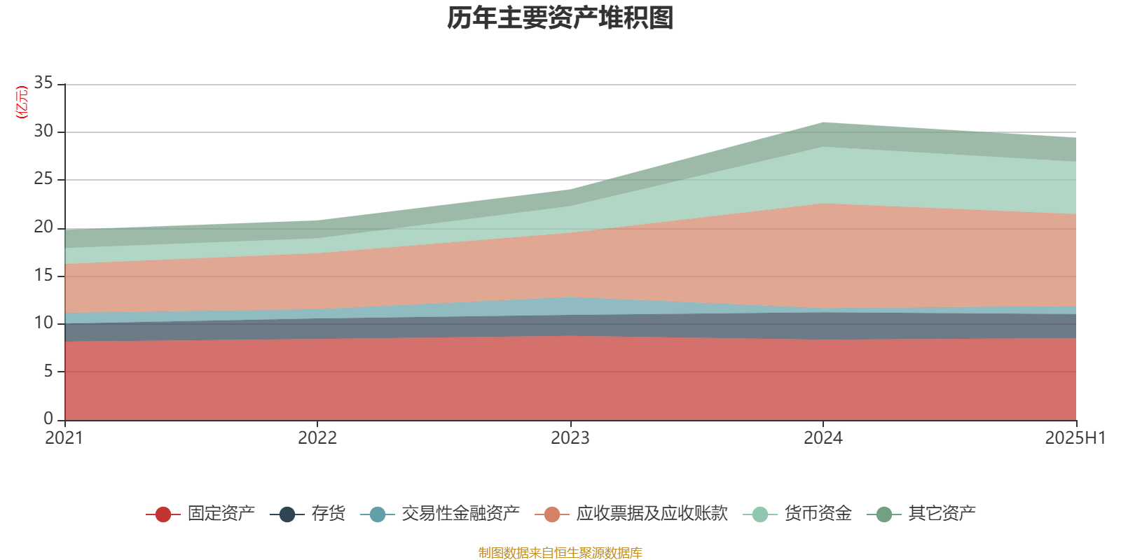 资产重大变化方面,截至2025年上半年,公司应收票据及应收账款较上期末减少12.12%,占公司总资产比重下降2.57个百分点;固定资产较上期末增加1.93%,占公司总资产比重上升2.03个百分点;交易性金融资产较上期末增加95.58%,占公司总资产比重上升1.46个百分点;存货较上期末减少12.39%,占公司总资产比重下降0.7个百分点。