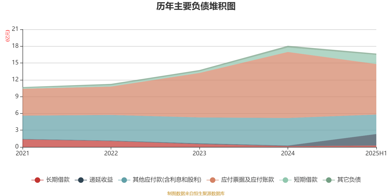 负债重大变化方面,截至2025年上半年,公司应付票据及应付账款较上期末减少23.51%,占公司总资产比重下降7.34个百分点;递延收益较上期末增加1722.41%,占公司总资产比重上升6.62个百分点;其他应付款(含利息和股利)较上期末减少29.22%,占公司总资产比重下降4.02个百分点;短期借款较上期末增加103.76%,占公司总资产比重上升3个百分点。