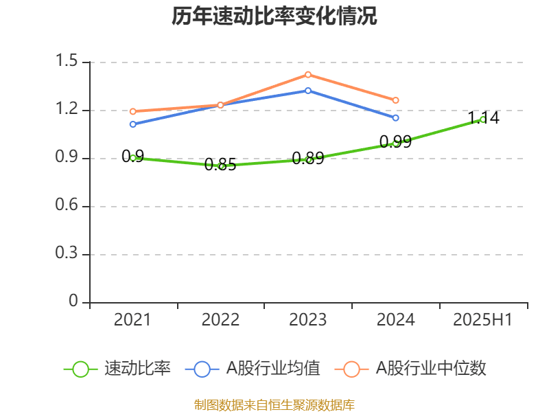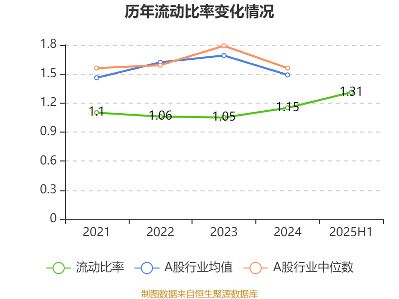 2025年上半年,公司流动比率为1.31,速动比率为1.14。