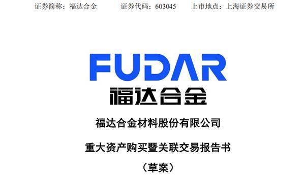 中国网财经9月26日讯 今日晚间,福达合金(603045.SH)披露了重大资产购买暨关联交易报告书(草案),公司拟以现金支付方式向温州创达、王中男、温州箴义等16名交易对方购买其持有的浙江光达电子科技有限公司(“光达电子”)52.61%的股权,交易最终作价为35249.98万元。
