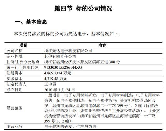 草案介绍,标的公司(光达电子)成立于2010年,是一家集新型电子浆料的研发、生产、销售于一体的国家级高新技术企业。自创立至今,标的公司始终深耕光伏导电浆料领域,依托自主创新与技术沉淀,不断拓宽产品矩阵,搭建了以TOPCon电池片银浆为核心,xBC电池片银浆、PERC电池片银浆、HJT电池片低温银浆、银包铜浆料等市场主流产品与前瞻性技术协同发展的多元化产品架构,实现对下游新型光伏电池片浆料需求的全面布局。