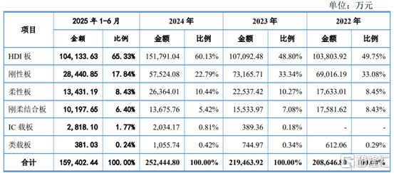 具体来看,2022年至2025年上半年,红板科技来自HDI板的营收占比从49.75%提升至65.33%;刚性板的营收占比从33.08%降至17.84%。
