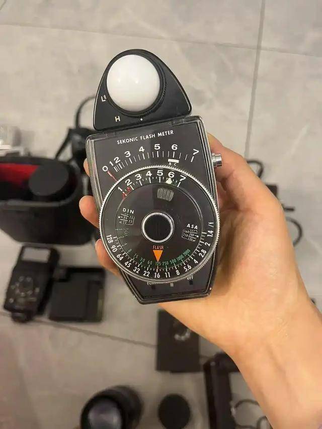 它还配备了薄型暗补偿单元和ND滤镜。只需旋转受光部刻度盘,即可在用于暗补偿的ND滤镜和高强度闪光测量之间切换。