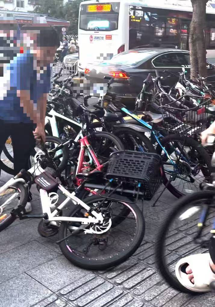 其一,非机动车道被大量电动车无序占据,周边的台阶上停满了车辆,导致行人正常通行空间被严重挤压。婴儿车难以跨越杂乱停放的车辆,轮椅更是无法在被堵塞的通道内移动,只能在车流中艰难绕行,安全毫无保障。