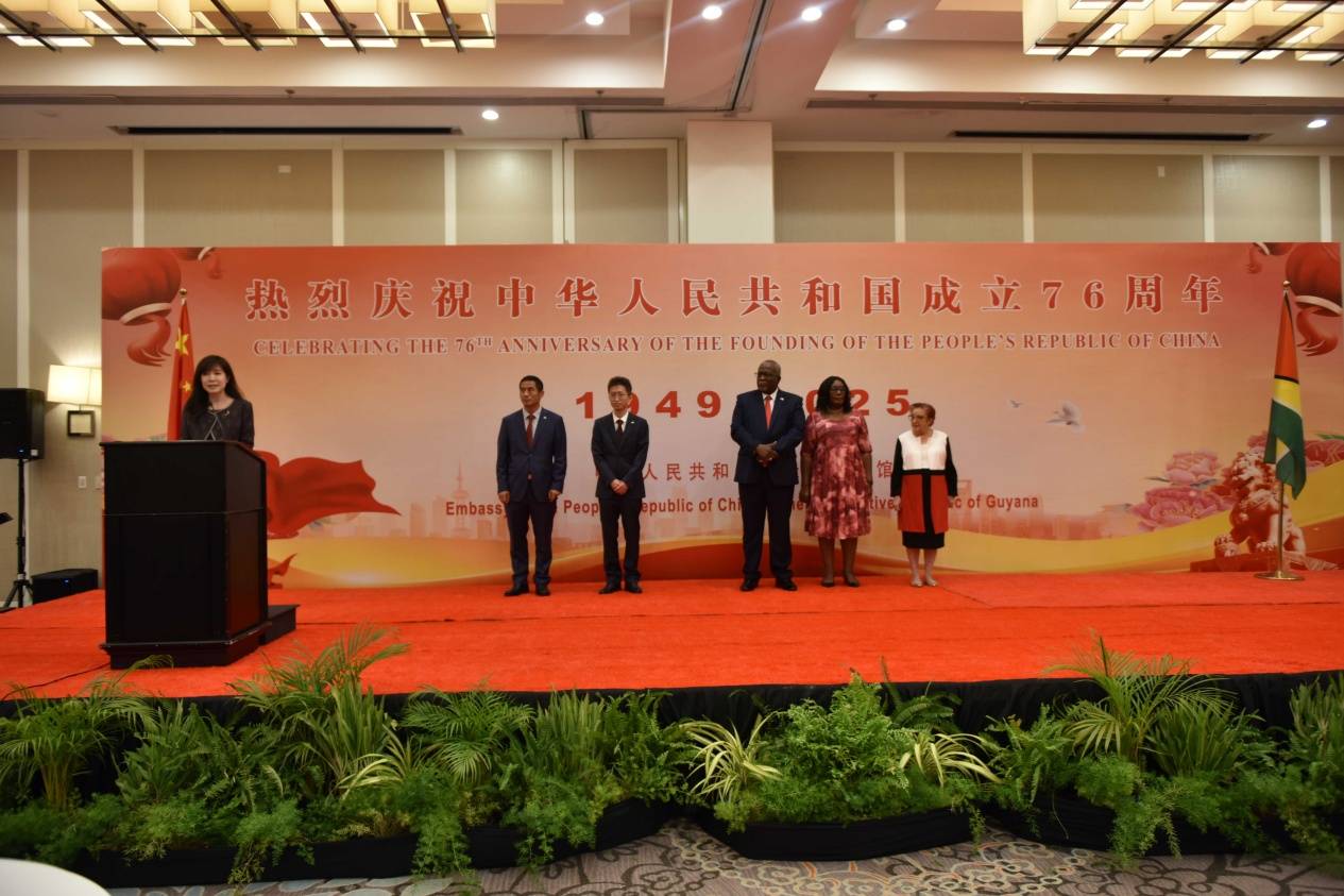 人民网里约热内卢9月26日电 (记者陈一鸣)乔治敦消息:当地时间9月26日,中国驻圭亚那大使馆举办庆祝中华人民共和国成立76周年招待会。中国驻圭亚那大使杨扬、圭亚那总理菲利普斯分别致辞,圭亚那议会事务和治理部长特谢拉等多位内阁部长、外国驻圭使节和华侨华人代表等400余人参加。