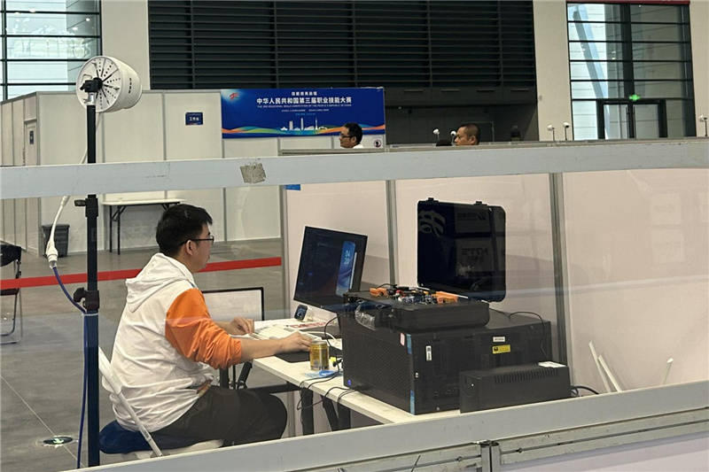 “云计算”项目选手陈万浦专注比赛中。天津电子信息职业技术学院供图