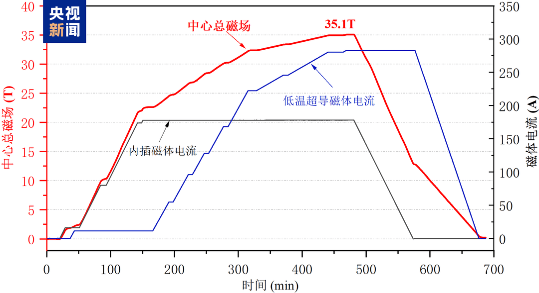 记者从中国科学院合肥物质院等离子体物理研究所获悉,由该研究所牵头,联合国内多家科研机构与大学共同研制的全超导磁体,近日实现了35.1特斯拉中心稳态磁场,创造了新的世界纪录。