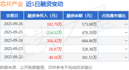 证券之星消息,9月26日,芯片产业(159310)融资买入339.65万元,融资偿还236.86万元,融资净买入102.79万元,融资余额573.08万元,近20个交易日中有11个交易日出现融资净买入。