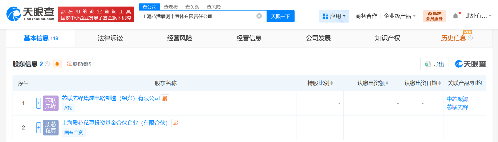 每经AI快讯,天眼查App显示,近日,上海芯港联测半导体有限责任公司成立,法定代表人为任鹏,注册资本4亿元人民币,经营范围含集成电路芯片设计及服务、新材料技术推广服务、货物进出口、技术进出口、租赁服务、机械设备租赁等。股东信息显示,该公司由芯联先锋集成电路制造(绍兴)有限公司、上海质芯私募投资基金合伙企业(有限合伙)共同持股。