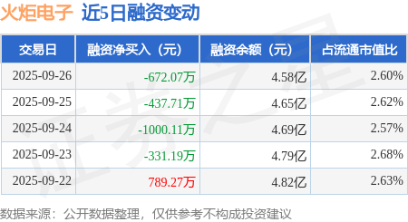 证券之星消息,9月26日,火炬电子(603678)融资买入2903.09万元,融资偿还3575.17万元,融资净卖出672.07万元,融资余额4.58亿元。