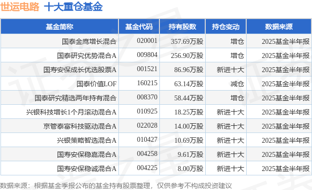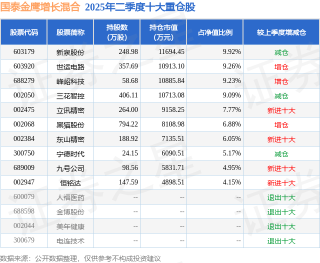 根据2025基金半年报公募基金重仓股数据,重仓该股的公募基金共16家,其中持有数量最多的公募基金为国泰基金的国泰金鹰增长混合。国泰金鹰增长混合目前规模为11.79亿元,最新净值1.5844(9月26日),较上一交易日下跌3.51%,近一年上涨81.78%。该公募基金现任基金经理为徐治彪。徐治彪在任的基金产品包括:国泰大健康股票A,管理时间为2017年10月30日至今,期间收益率为54.19%;国泰研究精选两年持有混合,管理时间为2019年12月24日至今,期间收益率为163.56%;国泰价值经典混合(LOF),管理时间为2020年7月24日至今,期间收益率为34.91%。