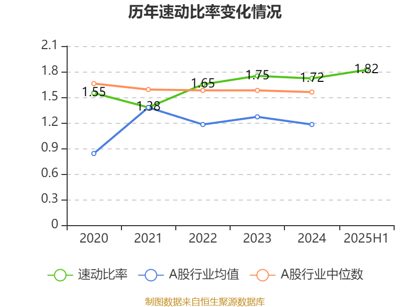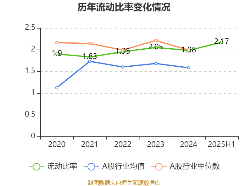 2025年上半年,公司流动比率为2.17,速动比率为1.82。