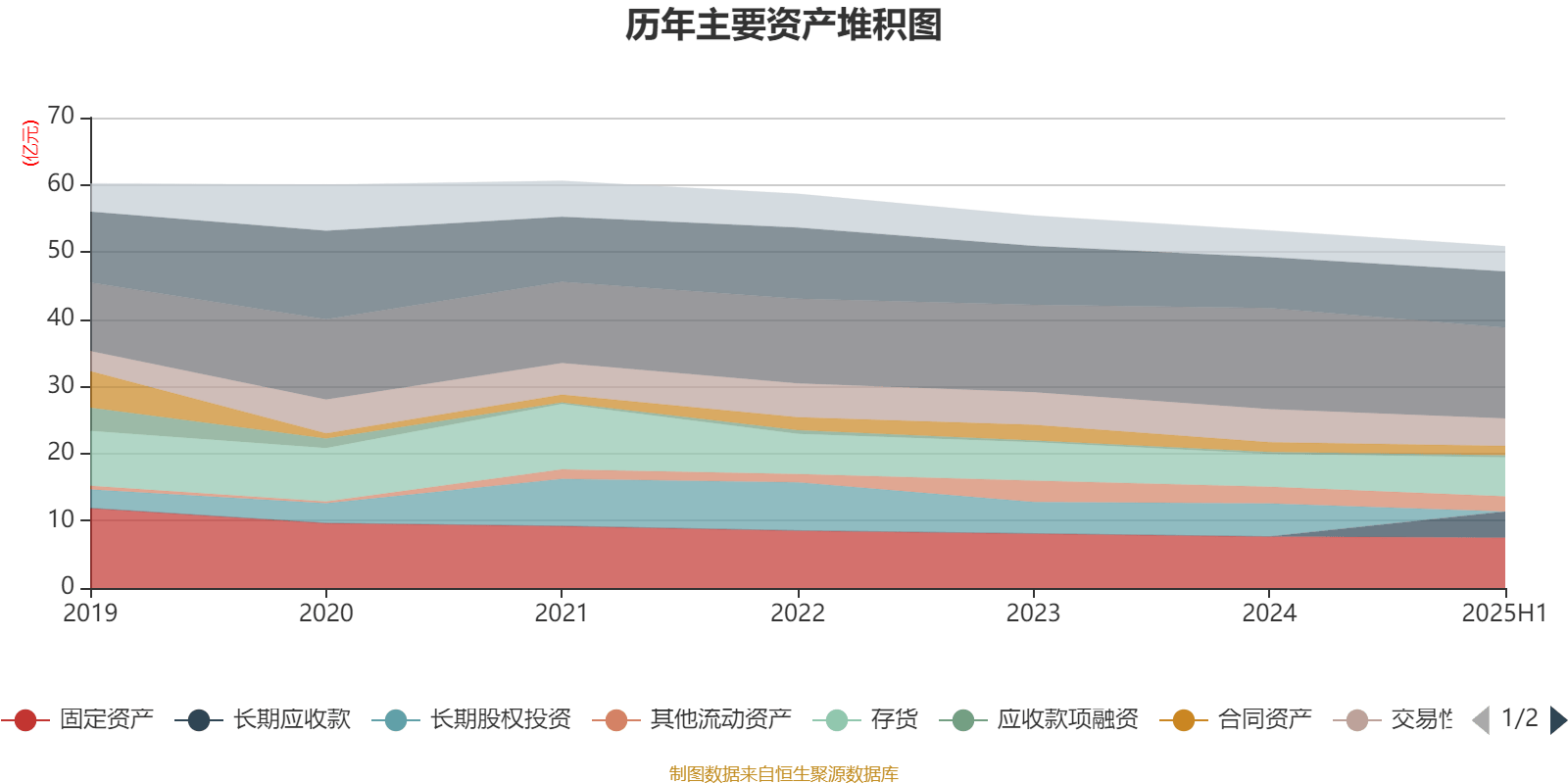 资产重大变化方面,截至2025年上半年,公司长期股权投资较上期末减少100%,占公司总资产比重下降9.27个百分点;交易性金融资产占公司总资产的7.67%,上期末为0;存货较上期末增加19.03%,占公司总资产比重上升2.25个百分点;货币资金较上期末增加9.99%,占公司总资产比重上升2.15个百分点。