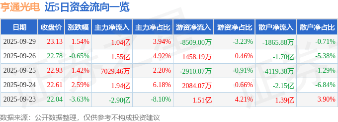 9月29日的资金流向数据方面,主力资金净流入1.04亿元,占总成交额3.94%,游资资金净流出8509.0万元,占总成交额3.23%,散户资金净流出1865.88万元,占总成交额0.71%。