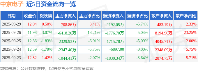 证券之星消息,截至2025年9月29日收盘,中京电子(002579)报收于12.04元,上涨0.5%,换手率2.97%,成交量17.31万手,成交额2.08亿元。