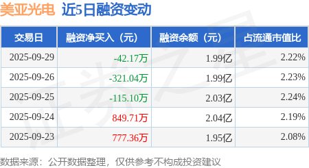 证券之星消息,9月29日,美亚光电(002690)融资买入1798.34万元,融资偿还1840.51万元,融资净卖出42.17万元,融资余额1.99亿元。