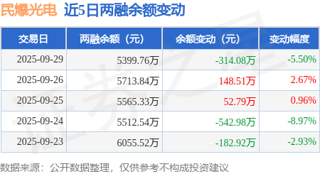 证券之星消息,9月29日,民爆光电(301362)融资买入401.94万元,融资偿还716.01万元,融资净卖出314.08万元,融资余额5399.76万元。