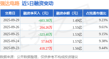 证券之星消息,9月29日,强达电路(301628)融资买入688.52万元,融资偿还1291.9万元,融资净卖出603.38万元,融资余额1.49亿元。
