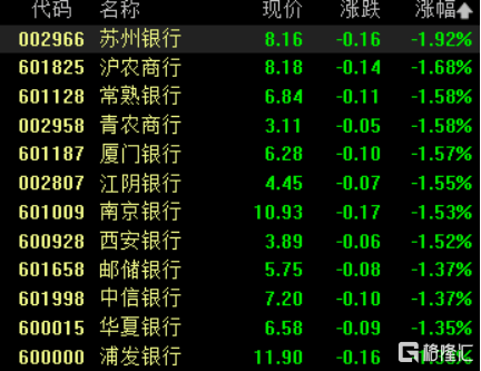 银行板块继续下跌,浦发银行、光大银行、中信银行等跌超1%。