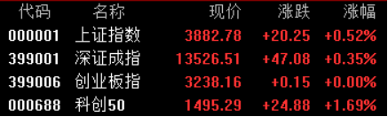 三大指数月线均收涨,其中创业板指本月累计涨超12%创三年多新高,科创50指数涨超11%创近四年新高。