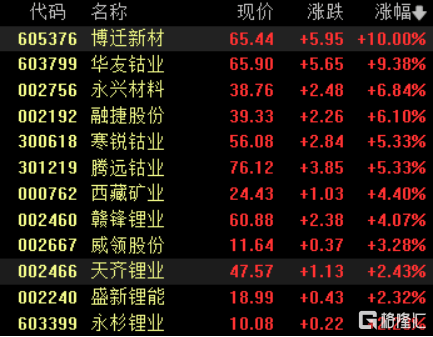 能源金属板块上涨,博迁新材涨停,华友钴业涨超9%,永兴材料涨超6%。