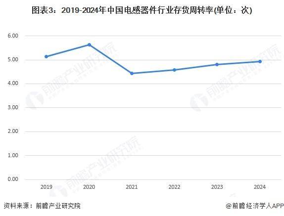 图表3:2019-2024年中国电感器件行业存货周转率(单位:次)