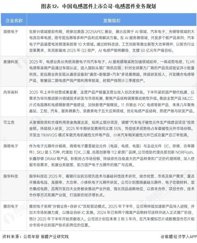 电感器件行业上市公司业务规划对比