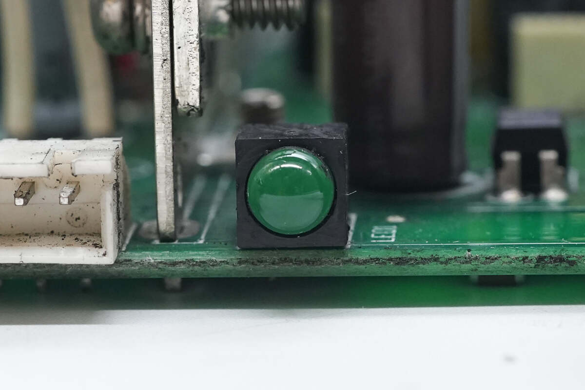 另一侧设有开关变压器,开关管散热片和高压滤波电容。
