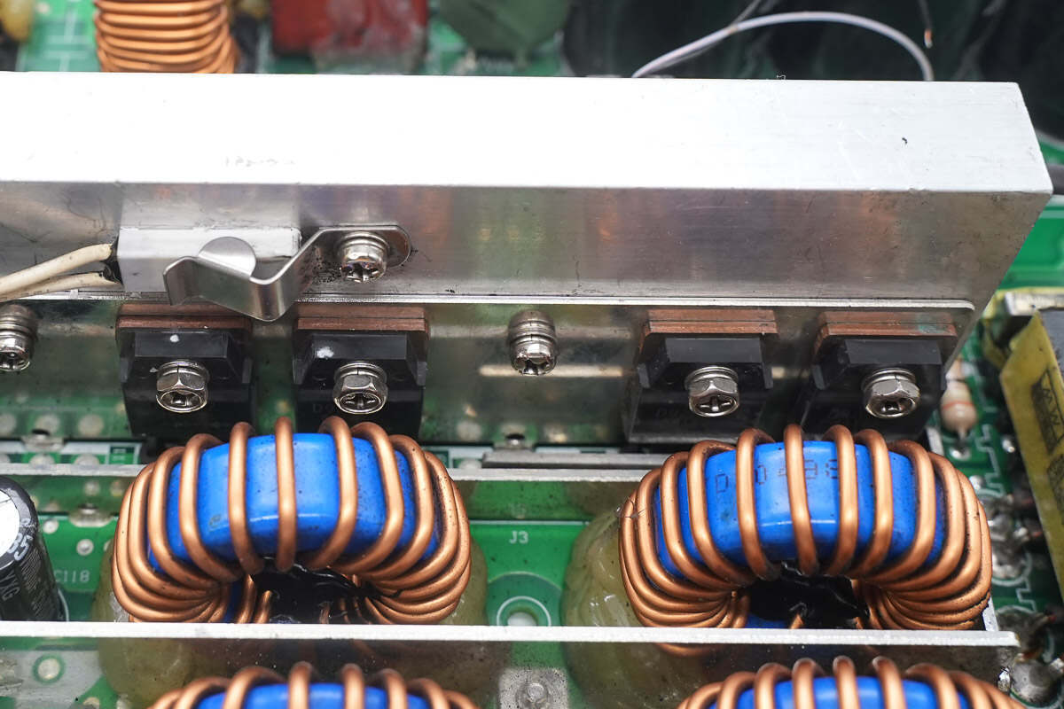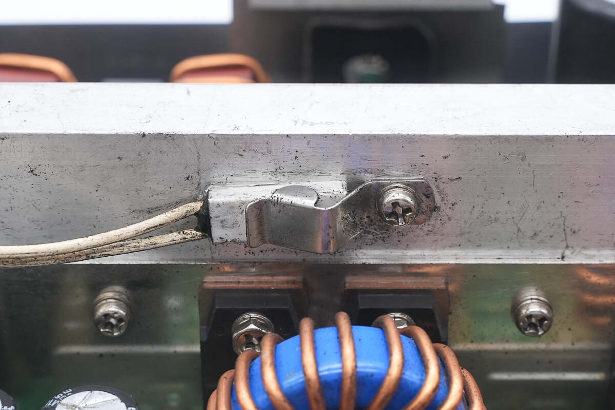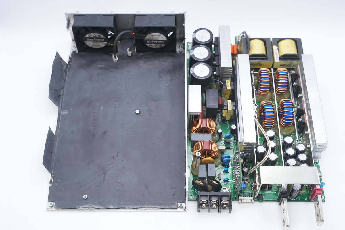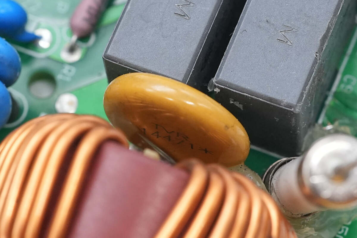 另一侧设有滤波电感,保险丝,共模电感,整流桥和整流桥散热片,高压滤波电容。