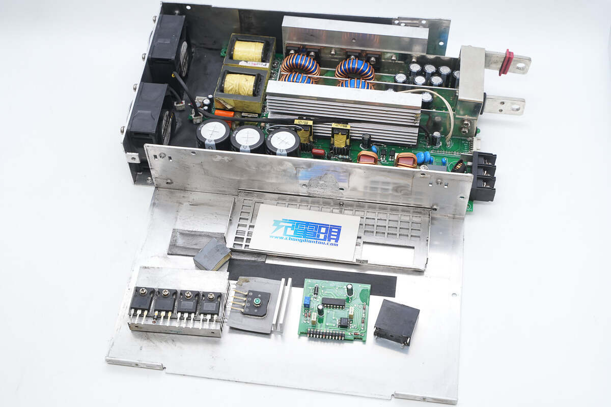 焊接拆下初级开关管,整流桥和控制小板,继电器和安规X2电容,继续进行拆解。