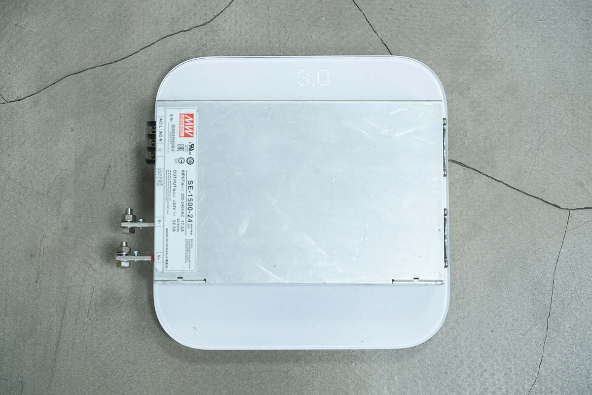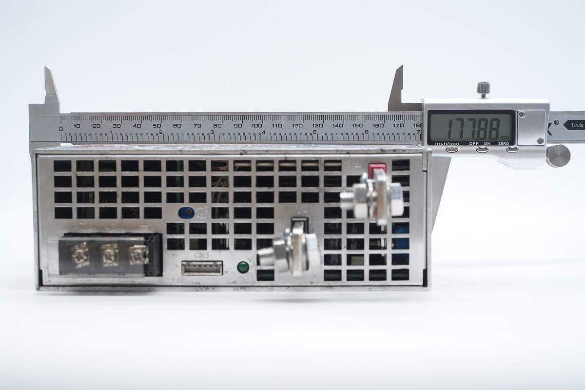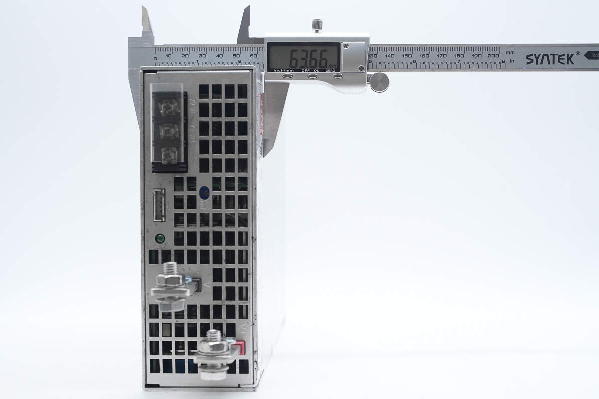 充电头网淘到了知名品牌明纬的一款1500W开关电源模块,电源型号为SE-1500-24,输入电压范围为200-240V,输出电压为24V,输出电流62.5A。电源采用铝合金外壳,内部设有散热风扇。