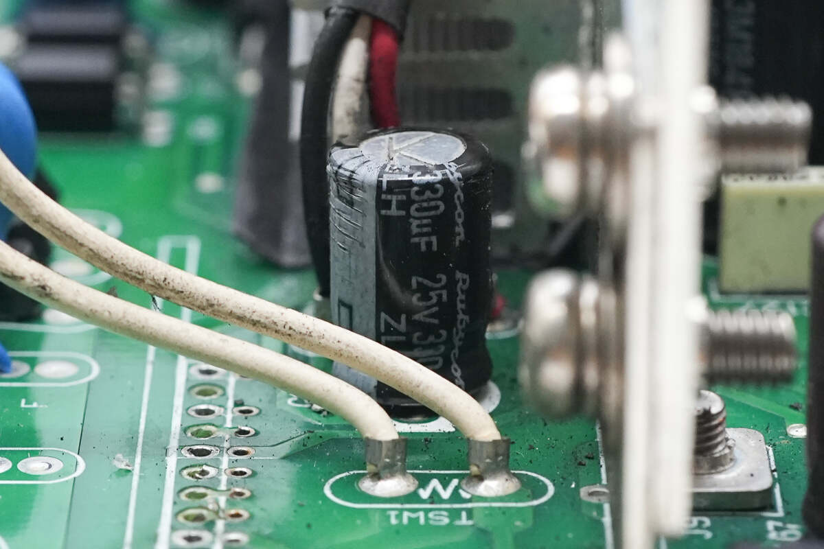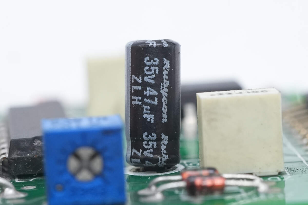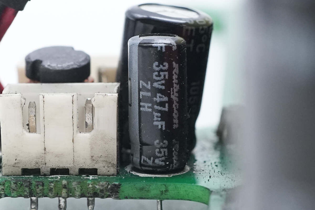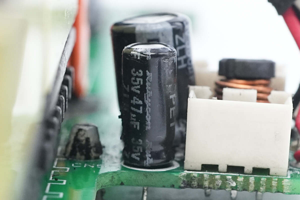 滤波电容来自红宝石,为YXG低阻电解电容,规格为35V1000μF。
