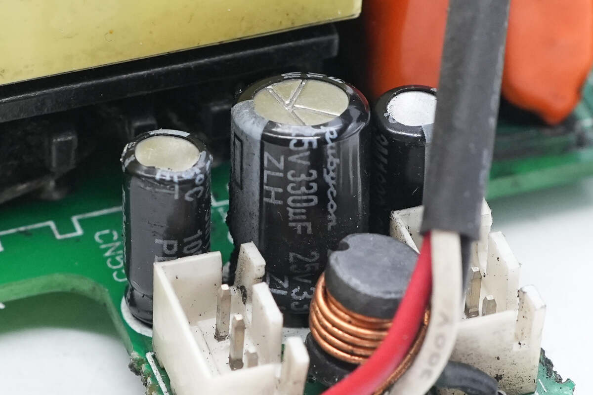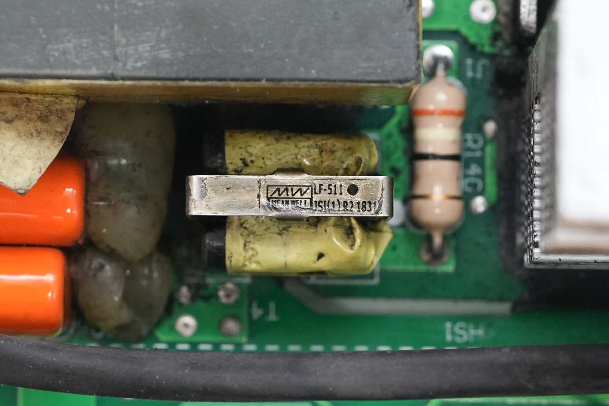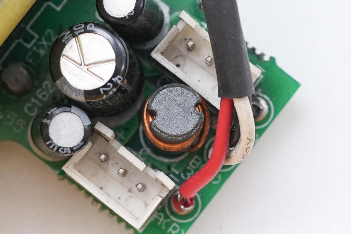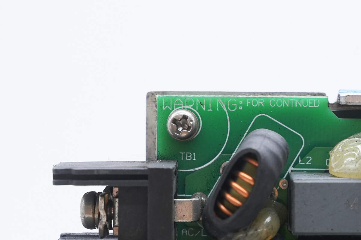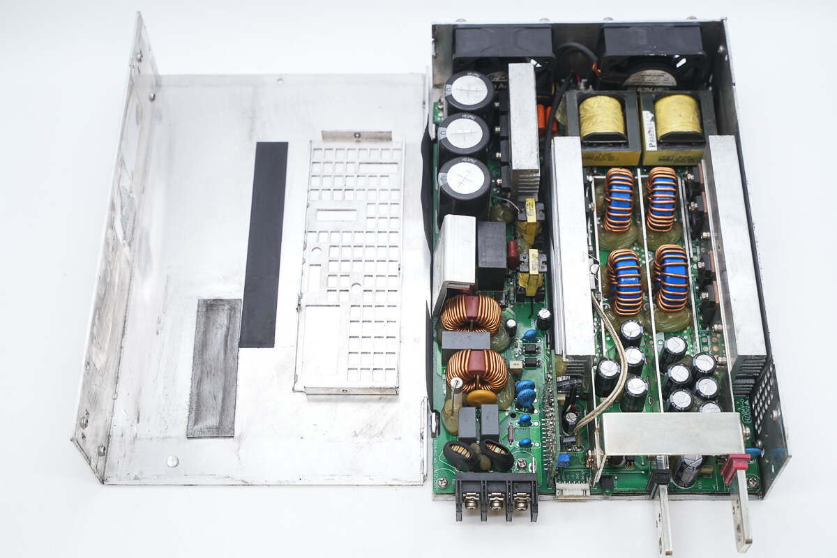 辅助电源芯片采用帕沃英蒂格盛TNY280PN,用于为散热风扇供电。整流管散热片设有温度开关用于过热保护,并设有铜排连接输出。电源内部电解电容全部为日系品牌,元件之间打胶加固,内部做工和用料扎实可靠。