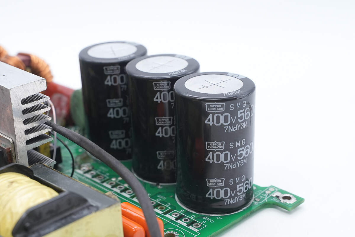 高压滤波电容来自贵弥功,为SMQ系列小型化电解电容,规格为400V560μF。