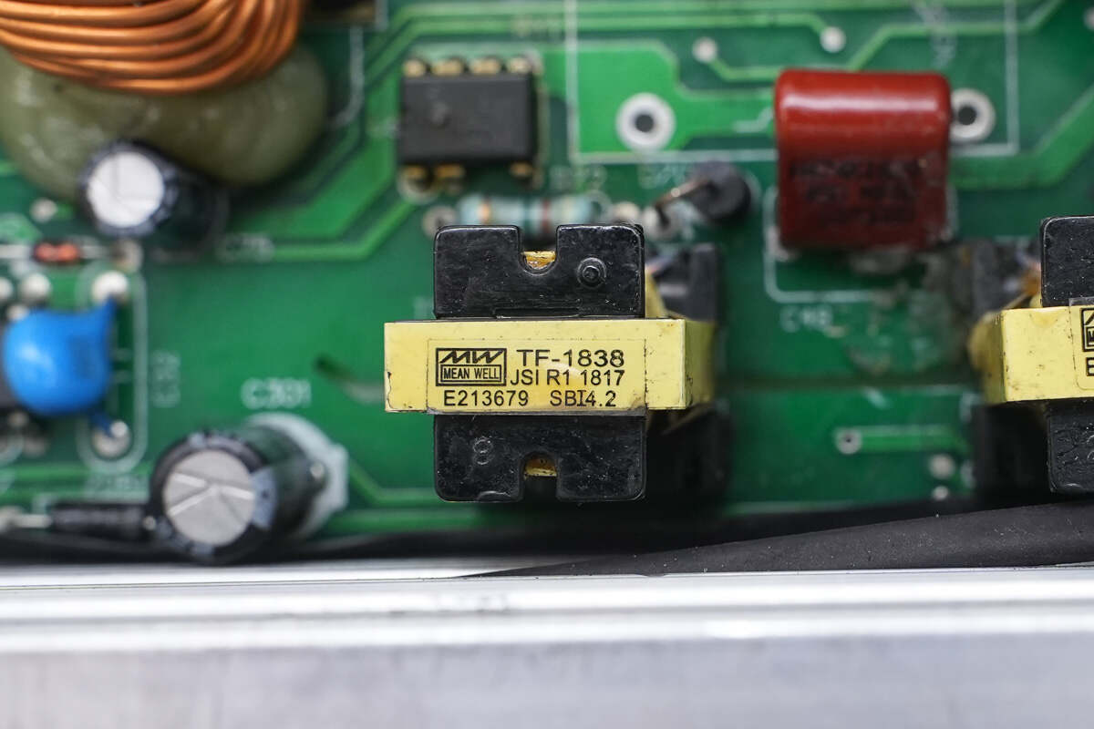 充电头网通过拆解了解到,明纬这款电源采用安森美SG3525A主控芯片,搭配使用德州仪器UCC27424驱动器来驱动隔离变压器,开关管使用英飞凌IRGP20B60GP。整流管来自富士电机,型号ESAD92-02R。