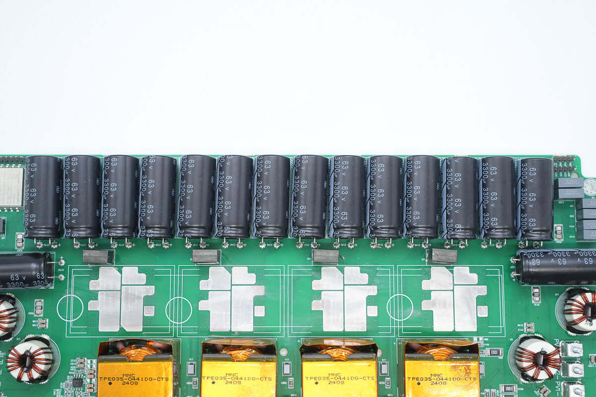 滤波电解电容共计16颗,每4颗并联对应一路输入。