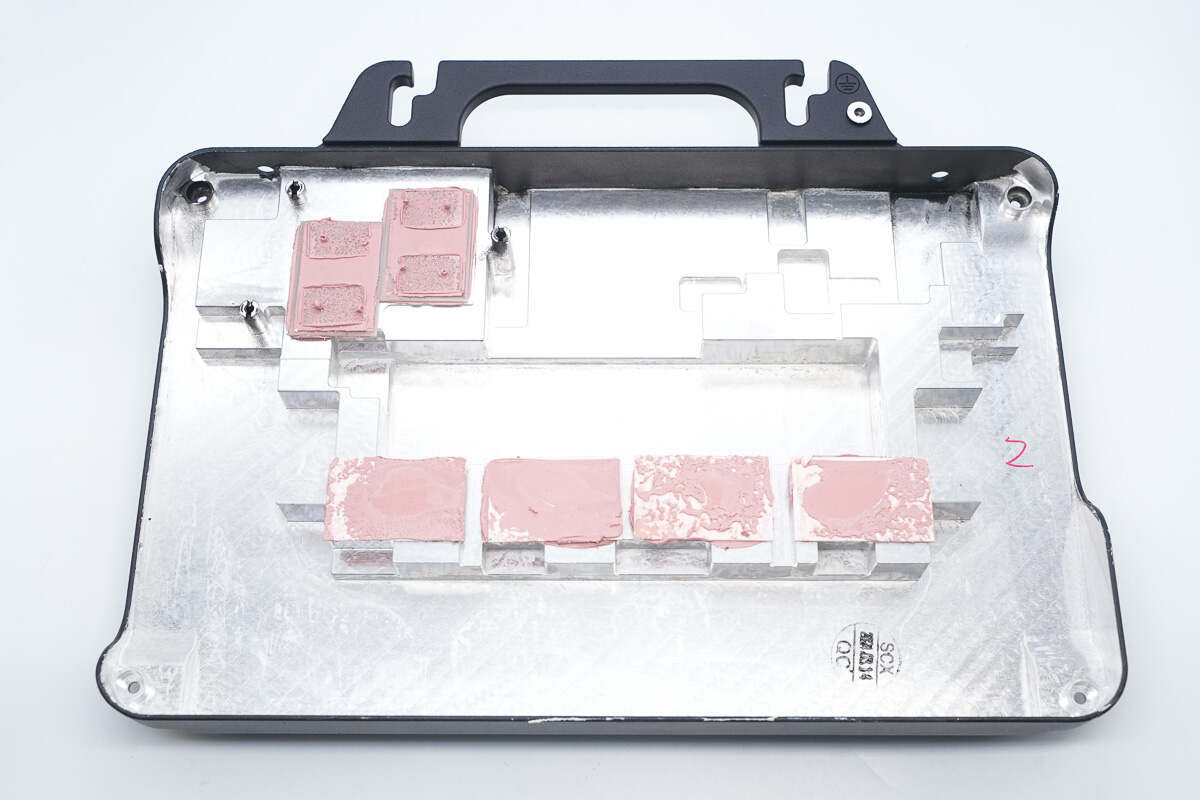 机身背面为格栅设计,增大散热面积便于对流散热,壳体边缘通过螺丝固定。