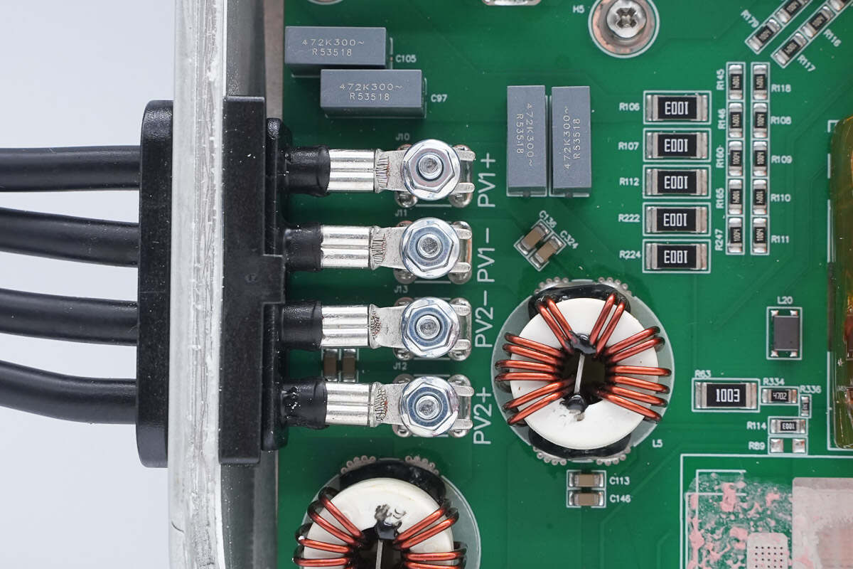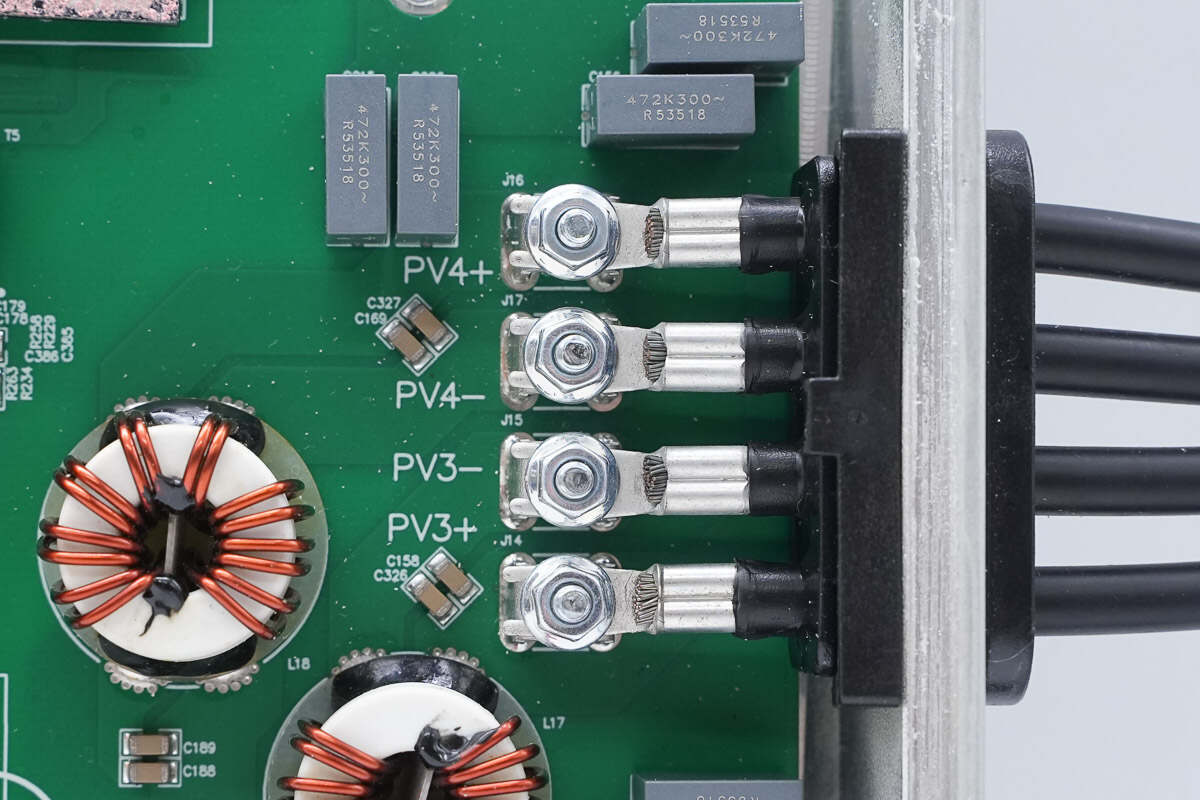 机身两侧MC4连接器通过压接端子和螺丝接线柱连接。