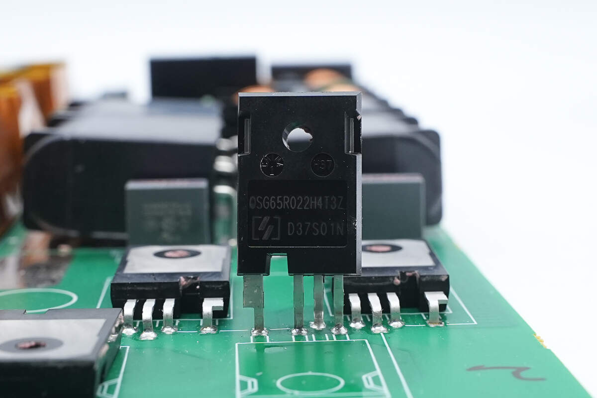 输出调制管来自东微半导体,型号OSG65R022H4T3ZF,NMOS,耐压700V,导阻22mΩ,适用于LED照明、太阳能逆变/逆变器、通信电源和服务器电源应用,采用TO247-4L封装。
