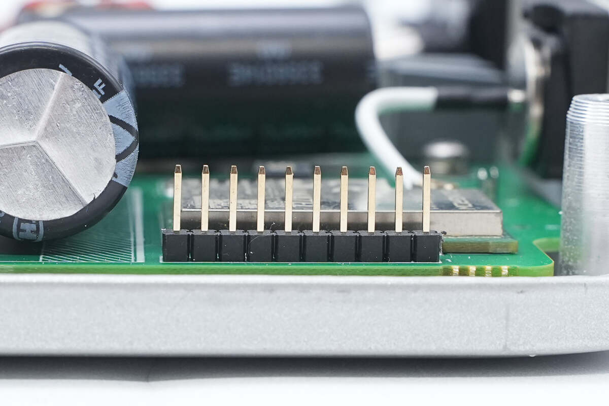 PCBA模块预留的通信排针特写。