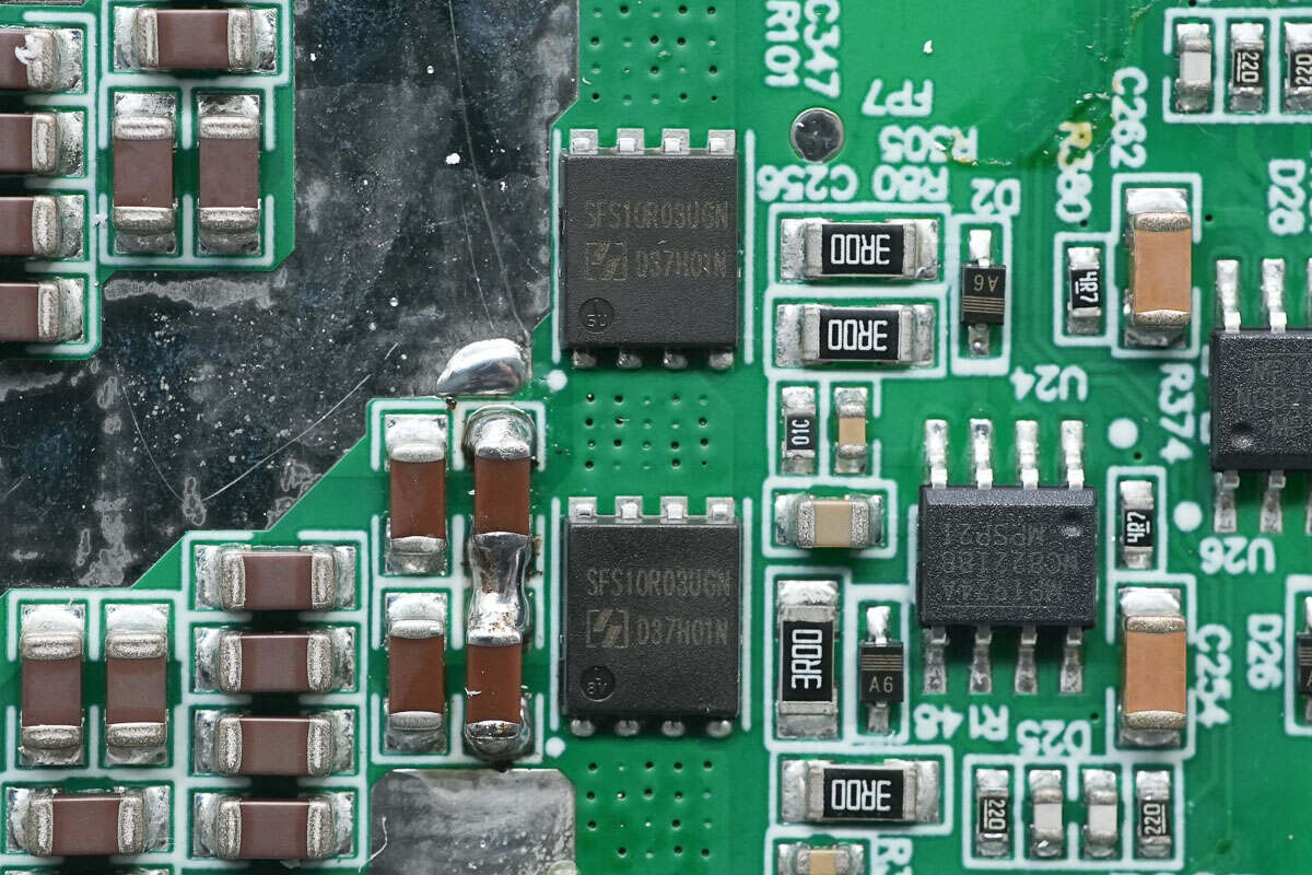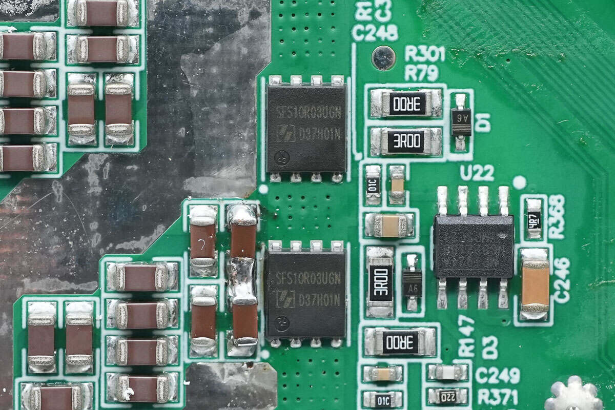 升压开关管来自东微半导体,型号SFS10R03UGNF,NMOS,耐压100V,导阻3mΩ,适用于PD快充,电机驱动,DC-DC转换等,采用PDFN5*6封装。