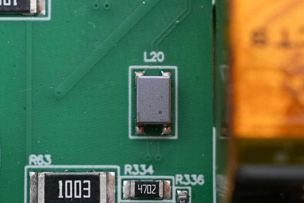 另一侧输入端也设有两颗滤波电感。