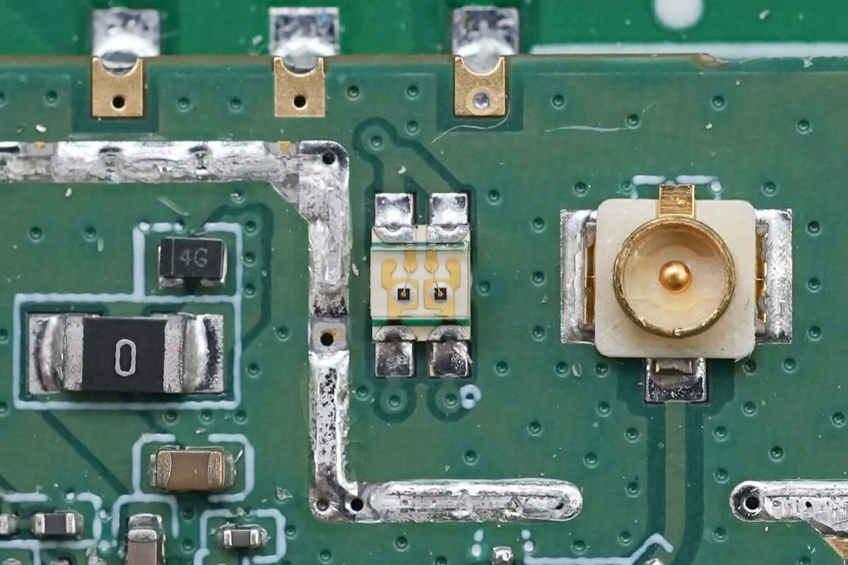 双色LED指示灯特写。