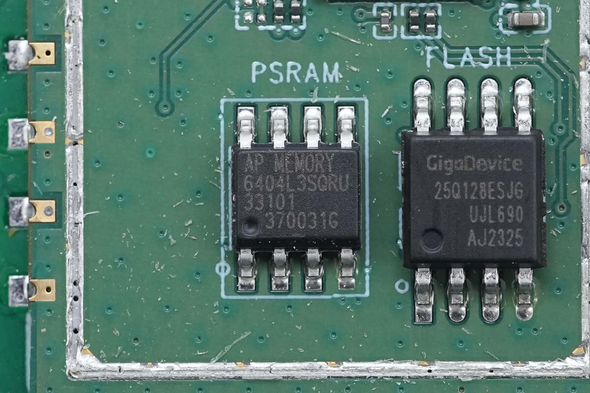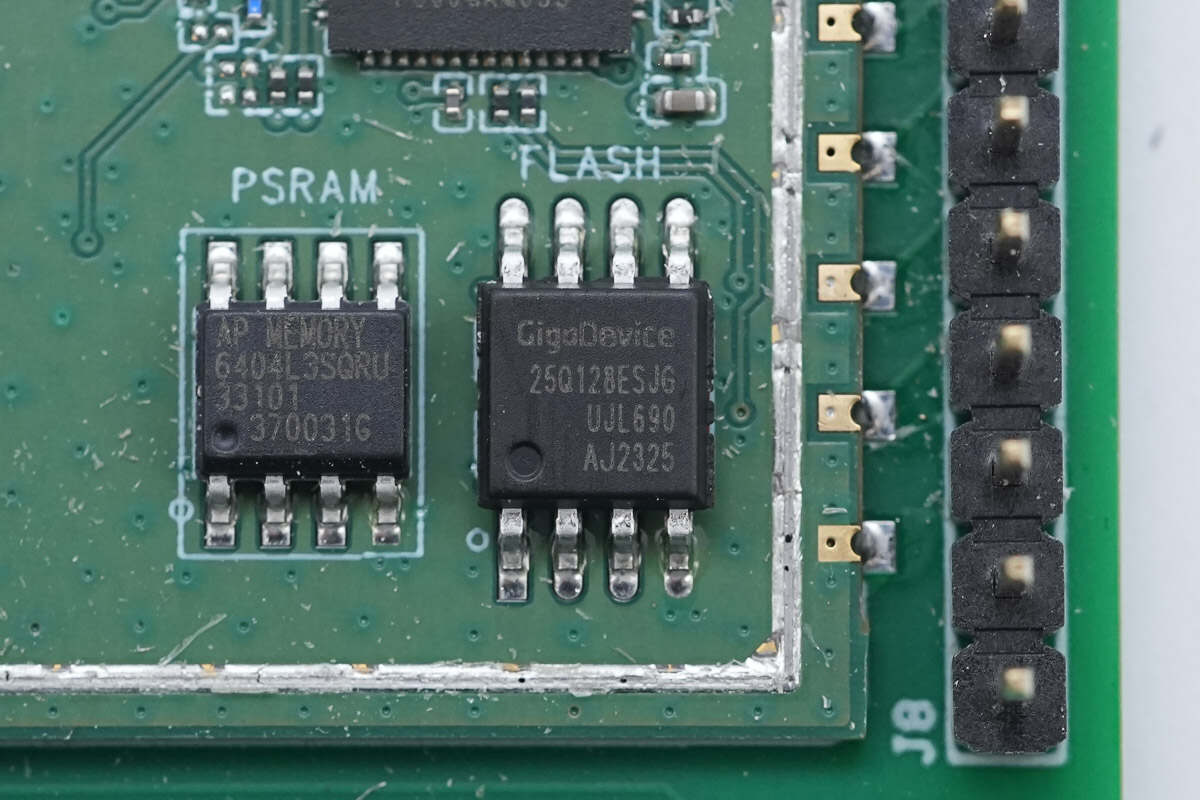 存储器来自爱普科技,型号APS6404L-3SQR,为QSPI接口的PSRAM,容量为8MB,支持2.7-3.6V供电电压,采用SOP-8L封装。